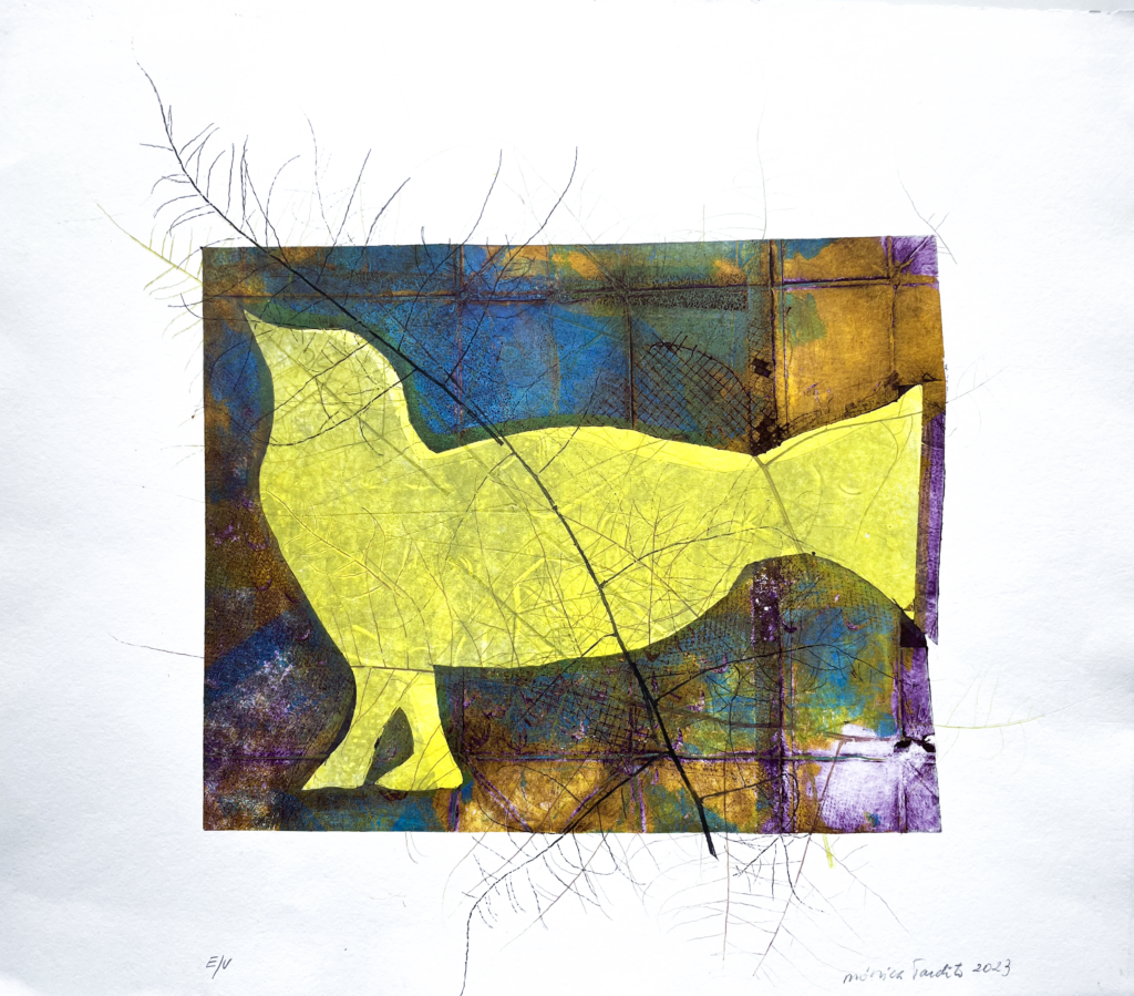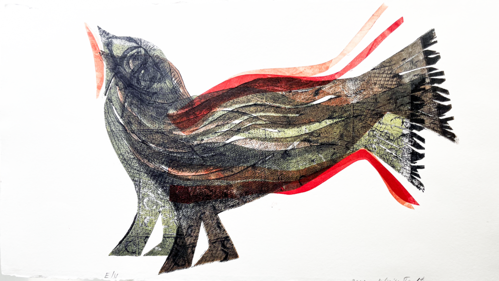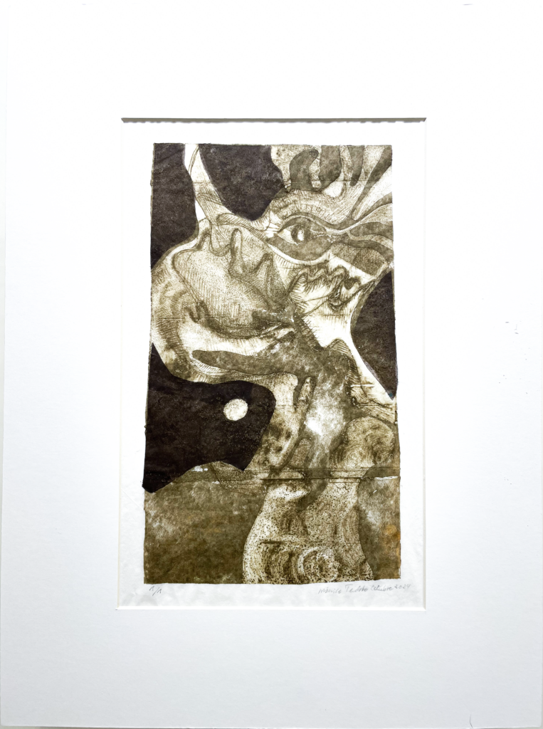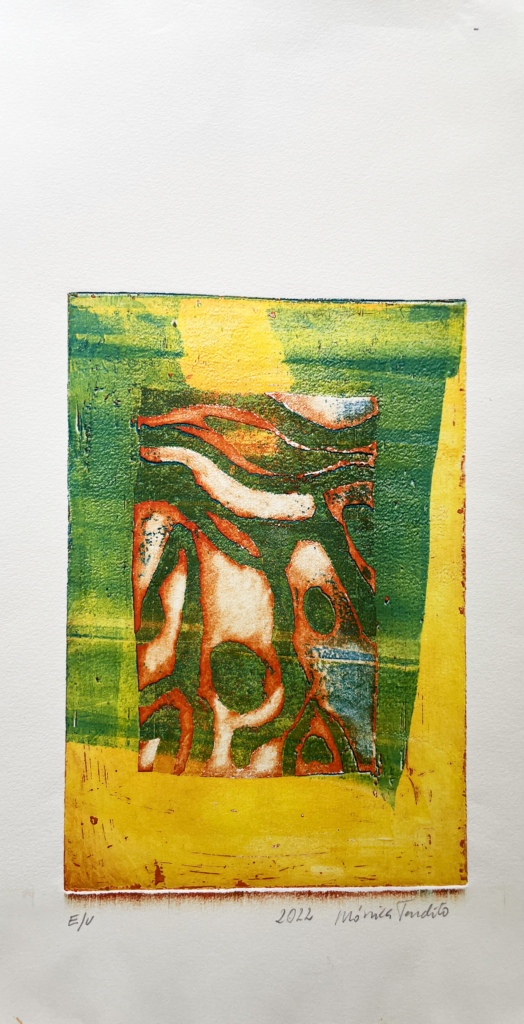 Su trabajo se caracteriza por el uso de colores tierra, la yuxtaposición de formas, manchas y gradaciones sutiles de textura y colores. En sus investigaciones más recientes con grabado verde, ha comenzado a desarrollar composiciones de carácter más realista, sin abandonar la riqueza matérica y expresiva que define su lenguaje visual..