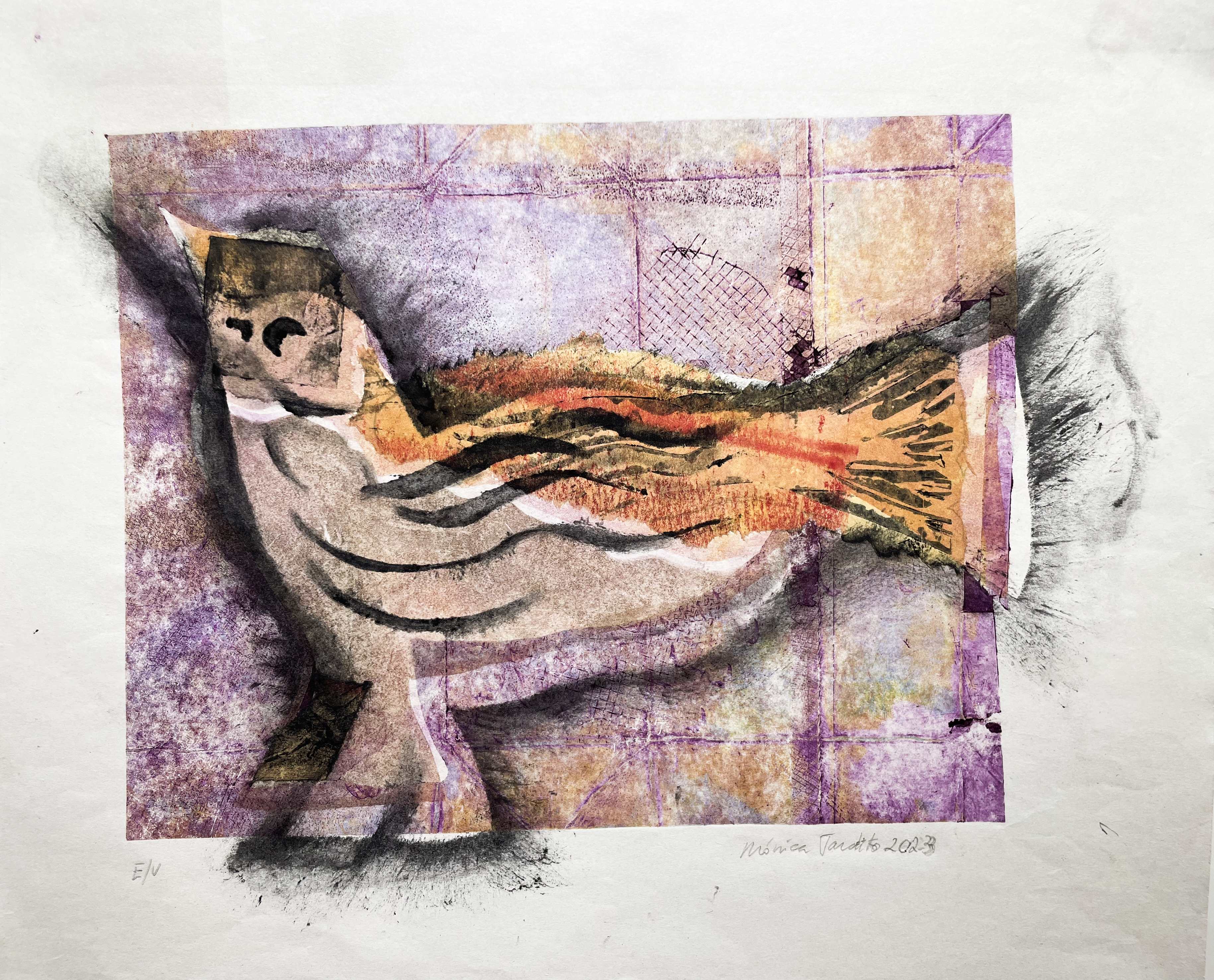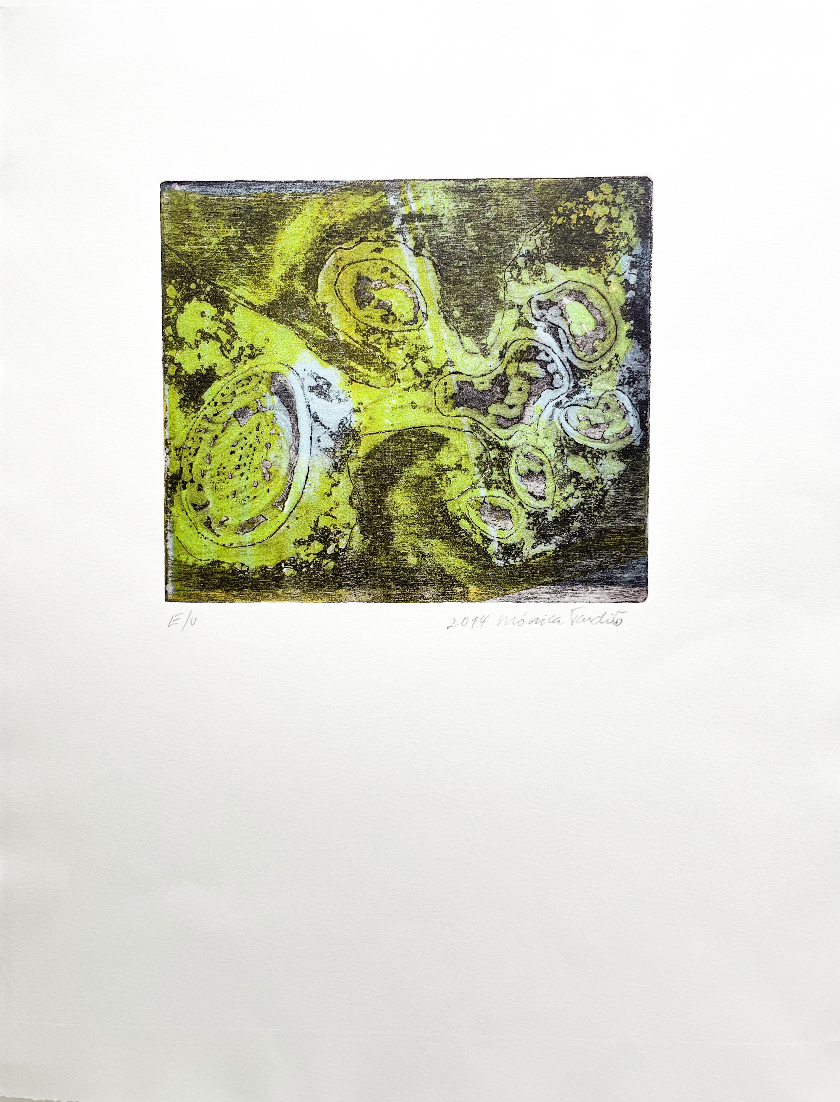 Su trabajo se caracteriza por el uso de colores tierra, la yuxtaposición de formas, manchas y gradaciones sutiles de textura y colores. En sus investigaciones más recientes con grabado verde, ha comenzado a desarrollar composiciones de carácter más realista, sin abandonar la riqueza matérica y expresiva que define su lenguaje visual..